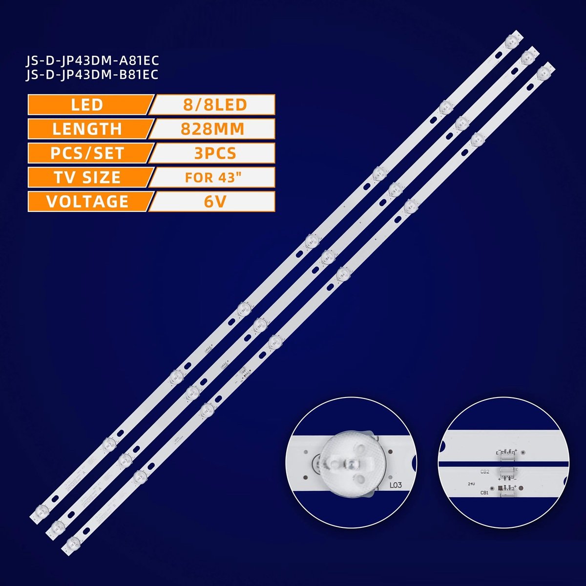43″ 8LED 3PCS 6V 822MM JS-D-JP43DM-A81/B82EC