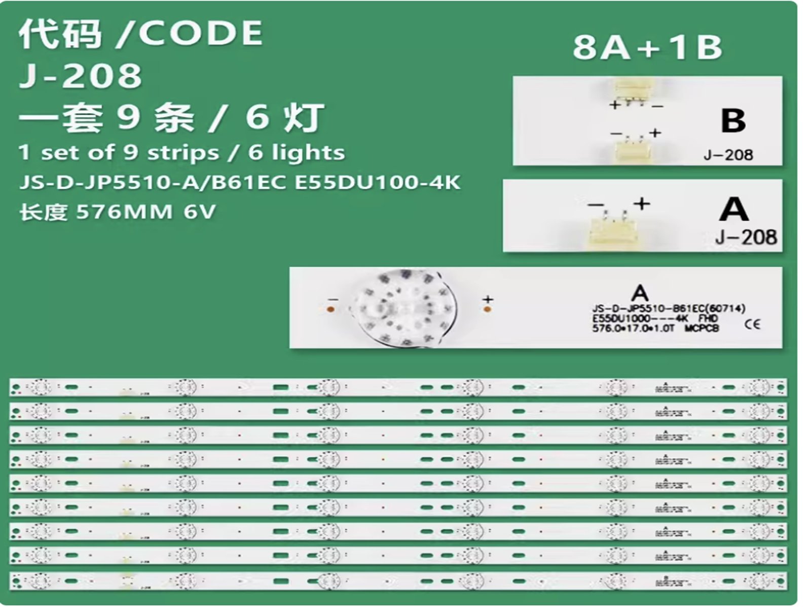 LED Backlight Strip 6 lamp for JS-D-JP5510-A61EC JS-D-JP5510-B61EC E55DU1000 4K FHD 6V/LED