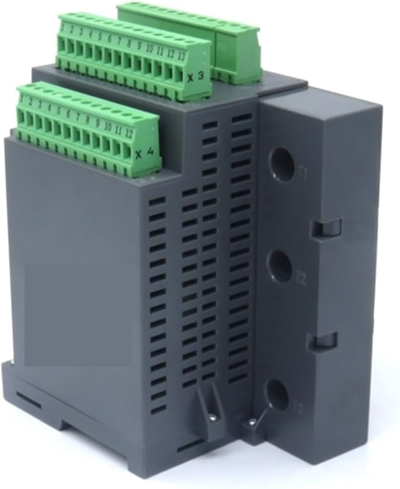 Space-saving DIN rail mountable structure, ideal for control panels and industrial cabinets.